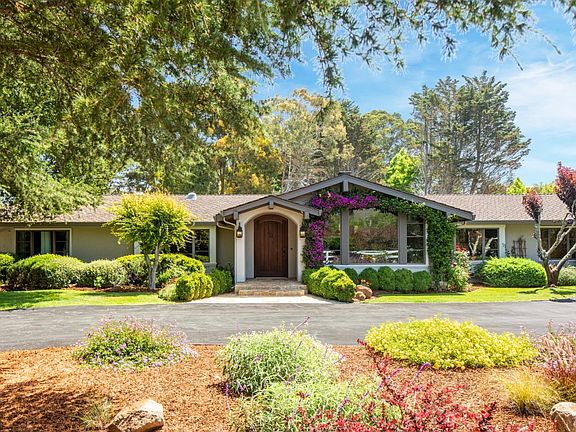 Many local residents will tell you the Prado Del Sol neighborhood is one of the best in all of Carmel Valley. 27209 Prado Del Sol meets and exceeds all of the expectations. The 2 acres include fruit trees, a vegetable garden, and lush landscaping. With over 4,000 square feet of luxurious, single-level living space, 4 bedrooms, and 3.5 bathrooms, the home offers spacious living with easy access to the outdoor amenities. Off the master suite is a perfectly located spa and sauna which opens up to the inviting swimming pool and backyard patio ideal for entertaining friends and family or enjoying your own sunny escape from the Peninsula fog. Relax and unwind at the meditation pergola with calming pond. Other highlights include a gourmet kitchen with breakfast bar, large island with sink, Wolf range and ovens, temperature-controlled wine room, formal dining room, and 4-car garage. The only thing missing from this Carmel Valley oasis is its next loving owners to enjoy for years to come.