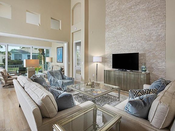 Casual elegance abounds in this beautiful, fully updated & rarely available 2 story home in the highly sought after Bay Harbor community of premier Bonita Bay. The open floor plan offers a large custom kitchen w/ stainless appliances, a bar area w/ beverage fridge, a 4 X 8 center island & quartzite counters & backsplash. The main level great room has a large living/dining room w/ a 20’ high stone accent wall, a spacious Florida room w/ hurricane rated sliding doors & views of the pond & fountain. The owner’s suite features a walk-in closet, a gorgeous bath w/ 2 vanities, a shower, a soaking tub & quartzite vanity tops. There is also a den/office on the main level that could serve as a 4th bedroom w/ a bath. The upstairs offers a spacious family room, 2 bedrooms & a bath with a walk-in shower. This is a wonderful home for entertaining in a friendly community w/ social activities, a pool, spa & community room. Enjoy the amenities of Bonita Bay including the private Bonita Bay Beach Park, over 12 miles of walking/biking trails, 3 parks, pickleball, a marina & restaurant. The Bonita Bay Club is a separate membership with 5 golf courses, pool, restaurants, courts and fitness center.