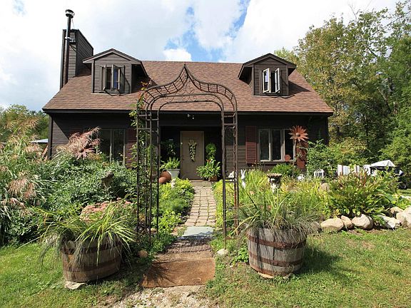 This cape style home, sited on 10.10 acres is full of character and will charm you from the moment you arrive. Once a two family home the current owner transformed the place into a single family home with plenty of space and opportunities for your finishing touches. The first floor has a sunny living room, an office and an extra large kitchen with a screened in porch. The second story has a primary suite with a soaking tub and a deck with views of the landscaped yard with an additional two bedrooms and a full bath. Step outside to the beautifully landscaped yard with Perennial grasses, plantings, a swing and a water feature made from the artesian well.