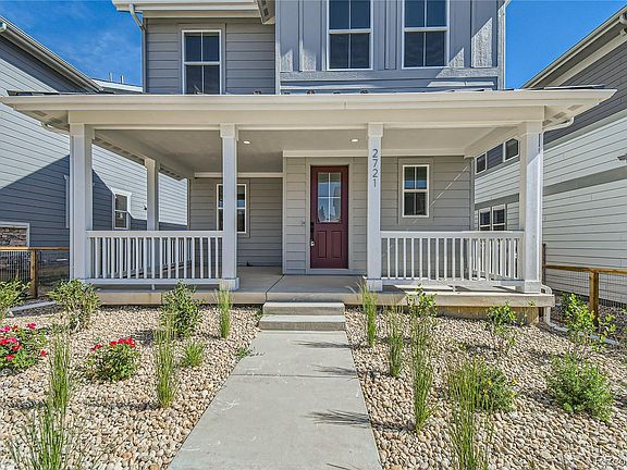 Brand new McStain home with a lovely, covered patio and fenced in front yard with xeriscape landscaping for super low maintenance. This stunning 2-story home is full of natural light and offers 2,140 sq ft finished above ground. The 3 bedrooms, 2.5 baths, and 2-car garage will stun you with incredible designer finishes including luxury vinyl plank flooring on entire main floor, beautiful, upgraded quartz countertops in the kitchen, gorgeous designer backsplash, stainless steel Gourmet KitchenAid gas appliances with a combination microwave/oven and a built-in cooktop featuring a chimney hood, and so much more. The primary bedroom and ensuite bath are roomy, open, and bright colored. This home features a loft area which is perfect for working from home or to be used as a play area. This home is complete and can be closed within 30 days! Come check out this great community in Thornton!