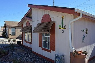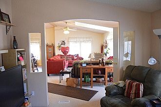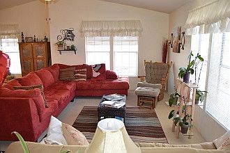 You'll have plenty of room to relax and enjoy this spacious 2 bedroom+ Den home in the quiet 55 + community of River Ridge Estates. You own the lot as well and HOA dues are only $15/month! Home has been updated with new carpet in master bedroom, countertops and tile backsplash in the kitchen. Dining area has a built-in buffet & hutch. New roof in 2015,abundant storage,storage shed & planter boxes