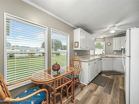 Recent Updates include New roof (2022), New plumbing and water heater, New flooring throughout most of the home, New garage door opener and storm garage door (2020), New gutters and most windows replaced. Additional perks include a attached garage for secure parking and storage, Sale includes a golf cart—perfect for exploring the community!