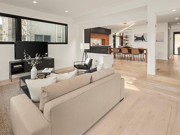 Modern remodel designed by Tim Alt of Altus Architecture is a masterpiece! Remodeled from 2019- 2020, 1st and 2nd floors taken down to the studs with family room addition, and includes all new electrical, plumbing, appliances, exterior fiber cement panel siding, and roofing. Center-island kitchen materials and appliances selected for quality and functionality for the discerning modernist: continuous/grain matched walnut woodwork/cabinetry; quartz countertops; Galley Workstation sink; Miele DW; Bluestar Pro style gas stove w/integrated grill/char broiler and wok functionality, large oven; Bluestar refrigerator is 100% stainless steel and glass. At the heart of the home, the kitchen connects to the major living spaces including the dining area with built-ins and wine fridge, the living room, and the step-down family room with high ceilings and access to your patio, 2-car garage, and fully fenced rear yard. Main floor den/library and powder bath round out the 1st floor. Step upstairs on the custom blackened-steel stairway with solid walnut treads. The primary suite includes walk in closet, ensuite dual-vanity bath with separate tub and shower. There are 2 more bedrooms plus an office/4th bedroom upstairs including a hall full bath with tub/shower, and laundry closet. Lower level, remodeled in 2015, impresses with amusement room with stone accent wall, 2nd laundry closet, media room, and 5th bedroom suite. Other high-end features: commercial grade roof, gutters and downspouts; spray foam insulation on exterior walls/underside of roof; Marvin windows/exterior doors; garage built in 2022 & wired for EV charging. The home is centrally located in the Cedar-Isles-Dean neighborhood – close to beaches, downtown commute, highway access, and future light rail. This high-quality design by a noted architect is not to be missed by the discerning modernist!