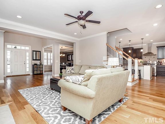 Gorgeous home close to everything! SS appliance w/ 5 burner professional gas range, soft close cabinets! 5 " slat hardwood floors, dining room w/ tray ceiling, crown & plantation shutters. Master suite includes tray ceiling, tile shower, large soaking tub & dual vanity. Mudroom off garage. Spacious screened porch opens to large family room w/ built-in bookshelves - perfect for entertaining! Flat fenced yard on the cul de sac. Close to Creedmoor Rd, walk to Seven Oaks, Brueggers, Harris Teeter, Starbucks