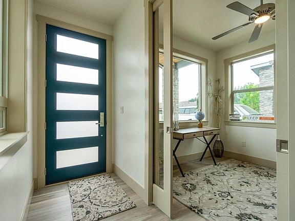 Newly completed home in Riviera Walk at Riverstone. This single level home features 2 bedrooms, 2 baths and a front flex room/office. It is loaded with high end features such as Radiant Floor heating, designer gas fireplace, full tile walk-in showers in both bathrooms, upgraded appliance package with a high-end Thermador coffee machine. This home has Universal Design features that include wider hallways, doorways and high ceilings. It is is LEED proposed, EPA Indoor AirPLUS certified, and has higher than code insulation. This low-maintenance, gated community has private access directly to the Centennial Trail, walk along the river, park, upcoming beaches, and into Riverstone to enjoy shopping and a glass of wine at many of the popular hangouts. Can't beat this lifestyle and location.
