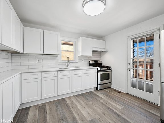 Nestled on a tree-lined street, this captivating 3 bedroom 1.5 bathroom Cape Cod boasts tradition and solidity. The owner has already kick started the renovations. Step inside and be greeted by a sizable living room with lots of natural light. Breathtaking kitchen with flat panel contemporary cabinetry, stainless steel appliances and quartz countertops. Adjacent to the kitchen, a separate dining room overlooks the private backyard oasis with beautiful oversized deck. Primary bedroom, brand new bathroom with walk-in shower, and hardwood floors throughout round out the first floor. Second floor features two bedrooms and a half bathroom. Full unfinished basement with limitless possibilities for design. Brand new water heater, air conditioner and furnace 2 years old. Roof and windows replaced in 2009. Two car garage and additional one gated parking spot from the alley.