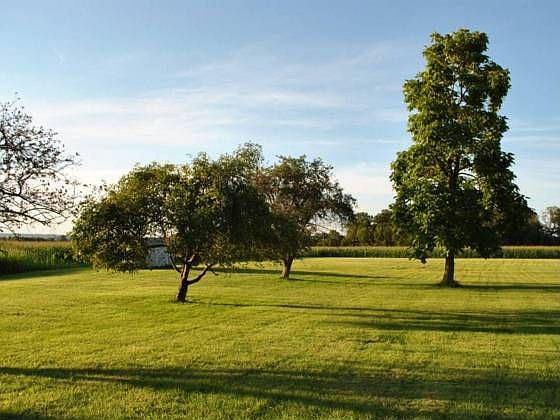 Sitting on a large open lot and boarding farm fields and open space, this stone front and brick sided ranch home features an abundance of natural light and a open floor plan. Relax in the large family room with bay window and open wall with views through to dining room. The eat-in kitchen features plenty of cabinet space, built-in microwave, range and dishwasher. A oversized serving window opens from kitchen to dining room, where entertaining comes easy, with plenty of space for that formal dining furniture and large hutch. The dining room opens to the four seasons Sun room with plenty of windows, majestic views of the open landscape, and slider to rear deck with gardens. The master bedroom features a full bath with stall shower, plus a walk in closet. Two additional bedrooms with a full hall bath complete the main level. The unfinished basement offers opportunity for additional living space to be added and features a egress Bilco door and laundry hook up. There is an attached, oversized 2 car garage with room for additional storage. A detached 50 x 30 Pole Barn with two bay entrances is ideal for the car enthusiast, Winnebago or large work equipment.