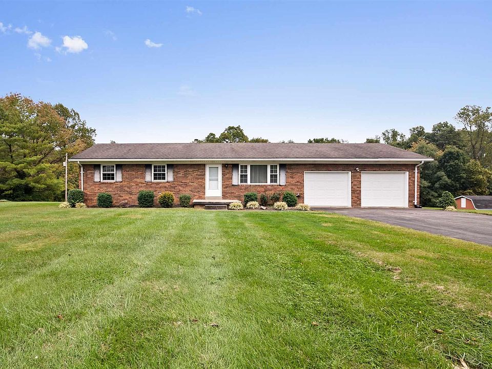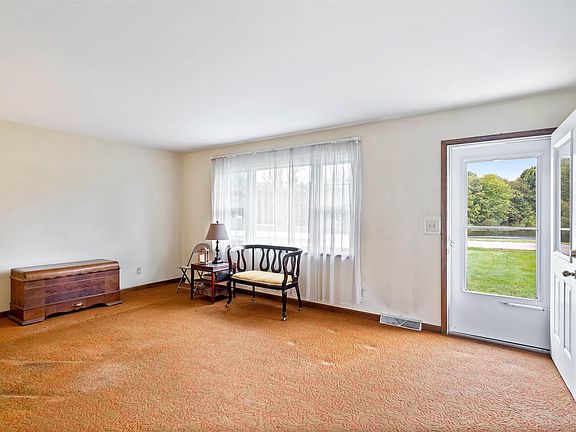 All Brick 2-3 Bedroom Ranch on the Northwest Side with 5.98 Acres!!! This one owner home has 1158 sq ft, 1 1/2 Baths, and Attached Garage. The property is "L-shaped" and goes behind the property owned by the neighbor to the South. Across the street is a beautiful lake view, and the new owner of this home doesn't have to do anything except enjoy that view! There are remnants of the 1970's that could be incorporated into some fun retro decor, and the natural woodwork is in great shape! The spacious Eat-In Kitchen has a nice view of the tranquil woods behind the home, and the sliding doors lead out to the patio. The Master Bedroom has a private 1/2 Bath. The Hall Bath has a tub/shower combo, nice linen cabinet and built-in drawers, and 70's wall tile in great shape! Bedroom 3 would make a great office. All 3 Bedrooms have double wide closets. The Attached 2 Car Garage has a Service Door, 100 amp circuit breaker box, and access to the attic. The seller is a POA and has found some information that is hopefully accurate on updates: Furnace 2018, newer counter range, replacement windows on the main floor, newer condenser or motor for C/A.