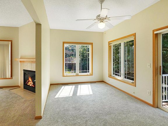 Looking for one-level townhome living? This inviting End-Unit townhome offers 1560 square feet of living space on the main level that includes a private owner's suite, living room with a gas fireplace, a sunroom, and main floor laundry. Second bedroom, located near the front, would be a great spot for an office. Plus there is a finished garage, a basement with a large family room, a third bedroom and bath for guests, and a utility room with considerable storage and workshop space. A nice deck overlooks the semi-private, partially wooded backyard area. Brand new carpet on the recently repainted main level and new flooring in the kitchen. Located on the east side of Hastings near biking/walking trails.