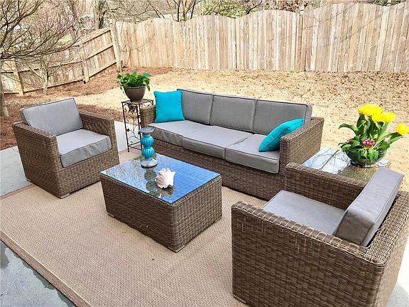Welcome to an affordable 4-sided brick home in Vinings! Newly renovated w/ designer sustainable finishes, high ceilings, lg picture windows for natural light, neutral color pallet, arched doorways & columns. Sustainable flooring on main, quartz countertops, new light fixtures & freshly painted thru-out. Oversized mstr w/fplc, dramatic trey ceiling & cozy reading nook. Pvt walk out yd w/ room for patio furniture & BBQ. Near downtown Vinings, Canoe Restaurant, The Battery, & overlooks "The Barn" equestrian center. CLOSE TO WESTMINSTER & LOVETT SCHOOLS. New Trane HVAC.