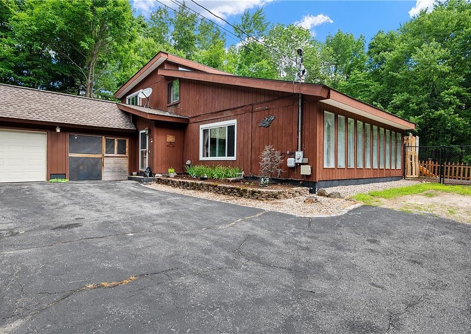 Privately nestled in nature, this contemporary offers 3 beds and 2 full baths, two separate sunrooms, a moderately open floorpan, fully fenced in back yard for kids or pets. First floor has 2 beds, a full bath, laundry, and the main living space and the second has a very large master suite with a full bath and private access to its own sunroom overlooking nature, as well as another room that makes the perfect office or nursery! Updates include a new water heater, well pump and captive air tank, 9 year old roof as well as kitchen appliances less than 2 years ago. Set on 5 acres, close to the MA border and zoned F5, horses/animals are permitted! Come see!