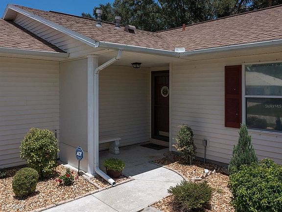 This move-in ready, 3 bedroom 2 bath home of 1,638 Sq. Ft. under heat and air has so many extras and is located in a neighborly, gated community with fantastic facilities. This home features an eat-in kitchen with glass top range new in 2010 with microwave hood, ample cabinets, closet pantry and new tile floor in 2013. The Living/Dining combo is bright and has cathedral ceilings. The 13 x 15 bonus room is an enclosed porch with glass slider windows and new blinds that makes a great place for game or card night with your friends. Inside laundry has washer/dryer and storage cabinets. The oversized 2-car garage has pull down to attic storage, auto door opener, and remote garage door screen. Home had new architectural roof in 2008, new split HVAC system with natural gas furnace in 2010. For energy conservation, all windows have low-E film and there are easy-install fabric storm shields ready when the need arises. The lovely landscaped 80 x 100 yard has mature shade trees and an orange and tangerine tree. Furniture and golf cart available. This financially sound, resident owned community of 938 homes has as huge clubhouse with multi-use arena; indoor pickle ball; indoor and outdoor pools; tennis, bocce, shuffleboard, and horse shoe courts; golf driving range; softball diamond; nature trails; wood and metal craft shops; 4 lakes for fishing; and free RV and Boat Storage and just 3 miles to public ramp to Big Lake Harris. Professional office on complex with medical, dental, RX, etc .