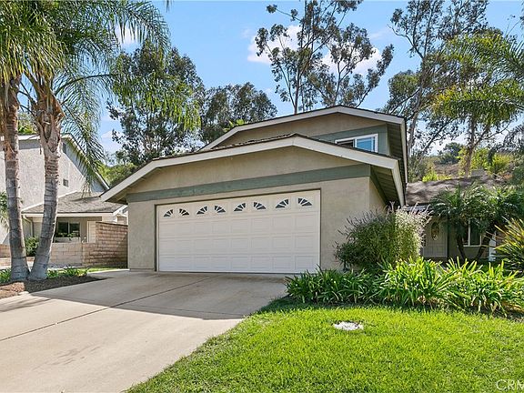In 2016 the house was remodeled to include the Kitchen, all 3 Bathrooms, wood flooring, Travertine tile, porcelain tile, energy saving dual pane windows, solar screen blinds, recessed lighting and the house was also repiped. HAVAC and ductwork were replaced in 2022. Solar Panels add to savings on your electric bill! A private double door entry leads to an open Living Room and Dining Room with vaulted ceiling and views of the open backyard and patio. The Main Floor Bedroom is currently used as a Family Room with an adjacent full bathroom. The Kitchen includes granite counters, stainless steel appliances, Travertine flooring, an extended island and a sliding door opening to the side yard. Upstairs, the spacious Master Bedroom has a balcony with peaceful views of trees and the hillside, a perfect retreat space for morning coffee, reading or an evening glass of wine. The ensuite bathroom has a granite topped dual sink vanity, walk-in closet, separate toilet, and shower room complete with a custom walk-in tiled shower. The two secondary bedrooms share a remodeled bathroom. Enjoy a large and expansive private outdoor living space to entertain your family and friends! A covered patio, new lawn, large growing area for plants, vegetables or more trees, truly make this a garden’s delight! On the side yard there is space for a future private patio off the kitchen. The property goes beyond the terrace hillside. Room to create your own living space! Close to beautiful hiking and biking trails, schools, Lake Forest Sports Park with unique events, restaurants, shopping, and views of the Saddleback mountains! The stunning Southern California Beach areas are close by! Easy access to the 241 Toll way and freeways. Low HOA and No Mello Roos!