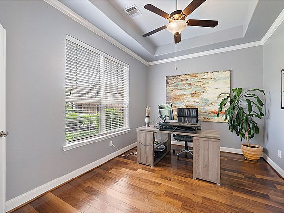 RARE FIND! Beautiful home situated on one of the largest lots in sought-after Spring Trails. Beautiful home offers everything you are looking for: soaring ceilings, light bright open floor plan w/breakfast area & kitchen opening to family room w/gas fireplace. Spacious kitchen is perfect for "home chef" boasting granite countertops, ample cabinets; large laundry room w/built-in shelving & washer & dryer remain; primary ensuite downstairs w/large walk-in closet w/built-in shelving, separate shower/whirlpool tub; 3 spacious secondary bedrooms up, one w/Jack N Jill bath; media/gameroom up; and abundance storage w/floored attic space & hidden niches. Then the backyard outdoor retreat w/amazing pool w/waterfall & spa, firepit, extended patios, pergola, and privacy backing to 4+ acres of green space & still plenty of yard left to play! Shopping nearby, zoned for great schools & EZ access to I-45,Grand & Hardy Toll.