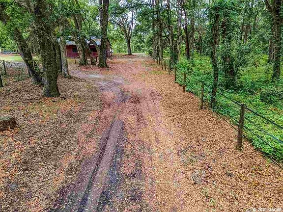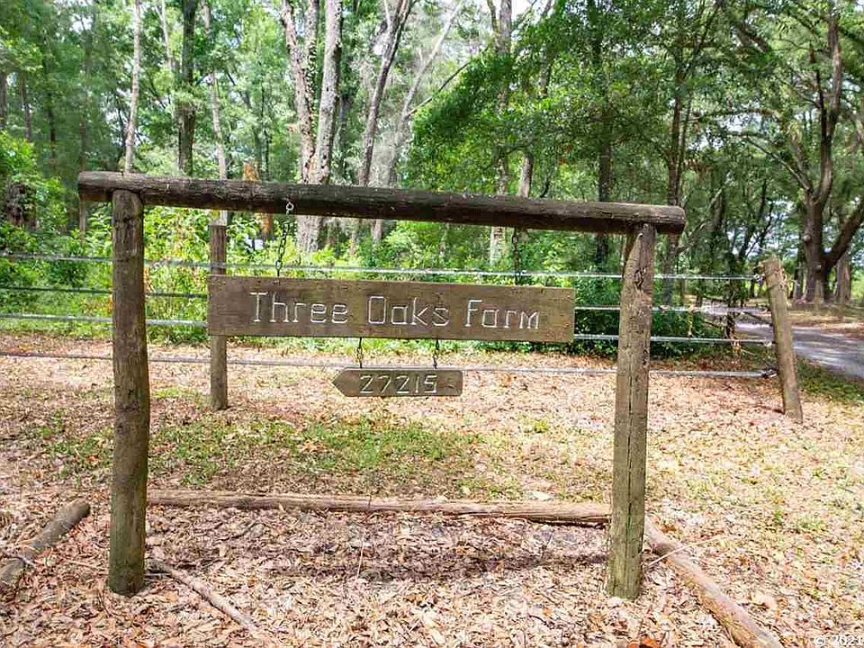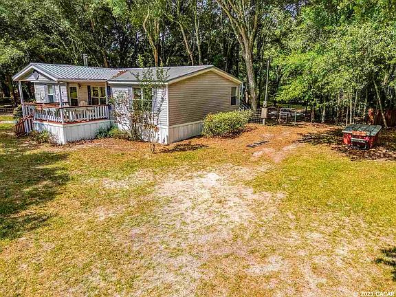 Gorgeous 7.93 acres in Newberry FL. Welcome to Three Oaks Farm! 3 Bedroom, 2 baths DWMH with metal roof. Front covered porch and rear covered deck. Living room with wood burning stove, split bedroom plan. Eat in Kitchen with built ins. Inside laundry room. Owners suite with walk in closet. This home has a fenced back yard for pets and entertaining. Horse lovers will appreciate the 4-Stall center isle barn with large tack room workshop, 220V power, lights, water, feed storage room, and outside hitching & grooming station with wash rack. Fenced and cross fenced for horses. Grand daddy oaks, peaceful setting, and privacy. Back yard entertainment area with storage building/workshop with power, custom built brick pizza oven, large stand alone smoker, fridge/keg storage shed, and picnic area with fire pit and grilling station. Horse pasture has small paddocks with water & gates and a separate run-in shed. Beautiful property and you just might want to build your dream home here!