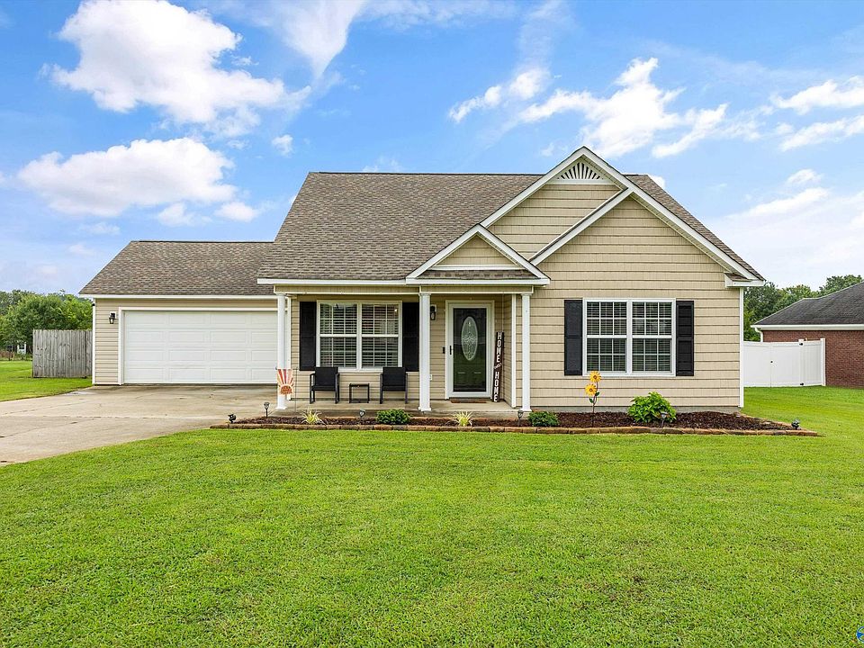 Come take look at this well maintained three bedroom two full bath home, located just outside of Ardmore. Featuring an open floor plan and split bedrooms. The living room and kitchen both feature laminate flooring, smooth ceilings as well as crown molding and updated paint. The kitchen also has custom cabinets and stainless appliances. All bedrooms have carpet and ceiling fans. Outside is a nice covered front porch and front entry two car garage with rear exit door into the back yard. Outback is a patio area and HUGE fenced in back yard. What are you waiting for? Make this your home today!!