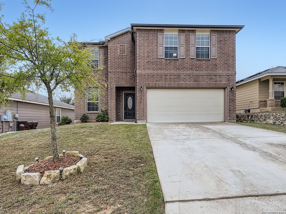 Location!!! Lovely two story brick faced home with beautiful landscaping and located in an excellent location. Upon entry, you are greeted with a lovely living area that can easily be used as a sitting room or separate dining room. Notice the brand new interior repaint! Rich red wood cabinets and tiled backsplash compliment the gorgeous granite countertops and modern stainless steel appliances. Utilize the spacious breakfast bar and dining area with ease while overlooking the spacious living room during entertainment or everyday life. All bedrooms and the upstairs loft feature brand new soft carpeting! Look forward to utilizing the primary ensuite's soaking tub after a long day and Texas sized walk in closet! The backyard's covered patio is perfectly suited for any summer day and the home's placement offers some beautiful hill country views being set at one of the highest lots in the subdivision! Enjoy easy access to I10, Joint Base Camp Bullis, as well as numerous parks, restaurants and shopping. Click the Virtual Tour link to view the 3D Tour.