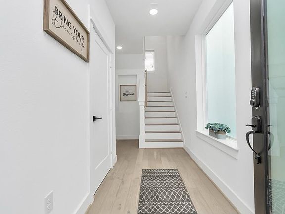 Discover a well furnished 3-story single-family home nestled in the heart of the historic Third Ward/Delano Park area. The exterior showcases a sleek modern design with clean lines, a mix of smooth stucco and horizontal siding, and expansive windows that bring in abundant natural light. The front features a private driveway and a modest, low-maintenance green space. Inside, the home boasts high ceilings, an open-concept living area, and upscale finishes including hardwood floors, quartz countertops, and stainless steel appliances. The second floor includes a spacious kitchen, dining, and living area perfect for entertaining, while the third floor houses a primary suite with a luxurious bathroom and walk-in closet. A private balcony offers city views, and the first floor includes an additional bedroom or flex space. With a clean, urban aesthetic and a convenient location near Downtown, it's ideal for modern city living. NB. just come in with your clothes everything is set.