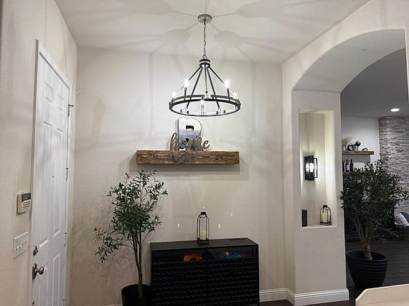 WOW! Here's a property that has everything any family could ask for and more! Spacious beautiful home with an entertainers backyard paradise. Walk into this property and be impressed.Paid Solar, Ceiling Fans and shutters through out the house, RV parking, Pool, Backyard Bar, shade covers, synthetic grass, Ev charger, Water Softener and so much more!!! The front door screen is custom made with cut proof technology for safety.Just inside the entry has either a formal dining area, den or playroom with recessed lighting, laminate floors and a custom ceiling. Go further thru the entry and you'll find 2 recessed nooks with new light fixtures. Step into an open living room, kitchen and nook. Living room has a rock wall with a built in fire feature, laminate floors, ceiling fan and recessed lighting.You will love this designer kitchen. Granite counter and sitting area with drop down designer light fixtures and recessed lighting. All stainless steel appliances and indirect lighting under the cabinets. Gas stove and pantry add to this amazing kitchen with a dining room with a custom chandelier,Walk down the hallway and see censored lights, beautiful decorative chair railing and Wainscoting with recessed lighting. Spacious bedrooms with with ceiling fans and closet systems. One bedroom also has decorative chair railinglaundry room is located between the 2 bedrooms. Spacious with cabinets and a sink just off of the garage. Bathroom has a tub/shower combo with tile counters.Double doors leads to a stunning cozy bedroom with a fire place and a large sitting area and recessed lighting and a custom nook. This bedroom has 2 walk in closets,. Sit in your tub, relax and listen to the waterfall from the pool.All bedrooms has transom windows above each door.Now Step Outside to an entertainers delight!Covered patio, Pool with a waterfall (fencing included), Synthetic grass, Concrete, drip system behind the pool, palm trees, patio covering and a built in bar!! What's not to Love !You have to see it to believe and appreciate it. Backyard is breathtaking and there isn't anything that needs to be done. All you have to do is plan your next party!3 Car garage has painted floors, recessed flooring and cabinets. The RV parking area is concrete with steel gates that lead to the back yard. The front gate is reinforced with steel as well.Don't wait to see this property, its going to go fast