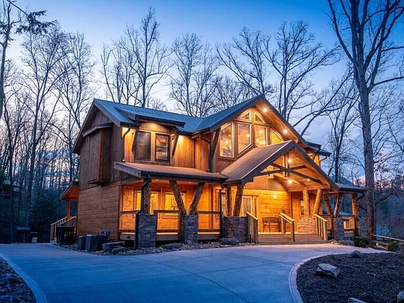 This gorgeous, custom-built pool cabin is being offered for sale for the first time. Custom Built in 2020, Glacier Falls offers its guests fabulous inside and outside space. This cabin did $263k in revenue in 2022!!! This cabin boasts 4 bedrooms, and 5½ bathrooms. Unwind in the hot tub with peaceful wooded views, cozy up in front of the electric (heated) fireplaces, and spend days in the large upscale pool outfitted with a grotto, adult spa, waterfall, and kiddie pool! The large treehouse/home theater room has a big screen TV, Blu-ray and DVD players, and lots of seating. The great room features a cathedral ceiling with a 2-story fireplace, and you'll also have TVs in the bedrooms, a gas fire pit area, a pool table, a washer/dryer, a fully equipped kitchen, a charcoal grill, and easy arrivals with flat, paved roads to the cabin and flat parking with 4 spaces. At night, spread out with 3 king-size beds, 1 triple bunk bed, and 3 sleepers (2 in the treehouse room and 1 in the loft). Styled to suit luxury tastes in the Great Smoky Mountains, the living room at Glacier Falls is impressive, to say the least. If you're looking for that wow factor as soon as you step through the door, this large cabin is for YOU. Featuring a 2-story cathedral ceiling along with a 2-story stacked stone (electric, heated) fireplace, gorgeous floors, log posts and mantel, and soaring windows letting in tons of natural light and tree-studded scenery, this living room is inviting for sure. The open, stylish kitchen boasts an island with bar seating, modern appliances, plenty of counter space, a double sink, and 2 coffeemakers. Just off the kitchen is the dining area with a large table to seat 12. Combined with the kitchen's bar seating for 4, everyone will have a place to sit and enjoy meals together. Windows around the space add to the natural light and beauty of the area. Downstairs you'll find a large, custom built pool that offers a swim-in grotto, color-changing lights, underwater seating, rushing waterfalls, a raised spa for adults, and a kiddy pool for the littlest ones to enjoy the water. A wall of windows frames the trees outdoors and brings tons of natural light into the pool room. The stone flooring meshes well with the pool's design, and there's a sitting area with a table, chairs, and a big screen TV for parents or guests who need a break from swimming. Best of all, having a private indoor pool means you can swim year-round, no matter the weather outside! The Treehouse/media room — offers a space to unwind or host meetings during the day and a place to watch movies together at night. There's a big screen TV, Blu-ray and DVD players, sofas (double as sleepers), loungers, and armchairs to relax, and another stone (electric, heated) fireplace. A large ceiling fan keeps everyone cool on warm afternoons, and windows surround the room, letting in views of the trees, just like a treehouse. In the loft, you can shoot pool, play cards and drink at the pub table, and enjoy the treetop scenery through large windows. You'll also have a great view of the stunning chandelier hanging over the living room. Tucked into the corner is the media space that features another big screen TV, a wall bar where you can chat and drink, and a sofa (doubles as a sleeper) with a coffee table. King-size beds await in 3 bedrooms, and 1 full-size triple bunk awaits in the last bedroom, great for the kids or teens Remember there are also 3 queen-size sleepers in the home, 2 in the theater room and 1 in the loft. Some of the best features at Glacier Falls can be found outdoors. A deck wraps around The Treehouse room so you can feel like you're in the trees, and the entry-level deck is spacious and covered along with a fire pit and outdoor lights surrounding a well-designed seating area. This is a fabulous opportunity to own a very competitive, income producing property. Don't let this one get away!