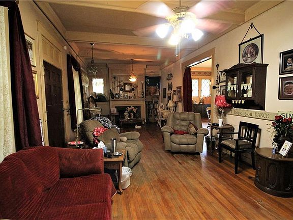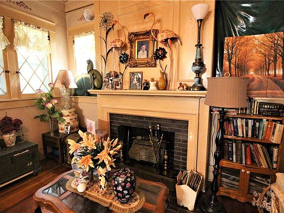 Great Investment! Architectural design throughout the house - formal dining, huge living room, 2 FP, butler's pantry, covered front porch, 2 lots, 4 bedrooms, 2 bathrooms. Very unique home on corner lot being sold as is. Will probably require in house financing or cash to purchase. Curtains in upstairs bedroom on the right, Oak shelf in dining room by fireplace and Video/voice surveillance does not convey with the home.