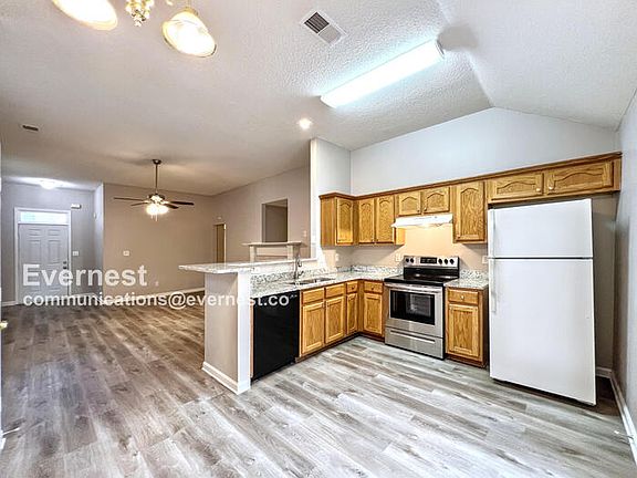 Welcome to this charming single-family rental home, featuring three spacious bedrooms and two bathrooms sprawled across 1,455 square feet of comfortable living space. As you step inside, you'll immediately appreciate the well-appointed kitchen, equipped with a refrigerator, electric stove, and dishwasher, making meal preparation a breeze. The open layout seamlessly connects the kitchen to the living areas, which are adorned with ceiling fans and an efficient gas furnace, ensuring comfort throughout the year. The inclusion of A/C ensures the home remains cool during the warmer months, providing a serene and relaxing atmosphere for you and your family. Outside, the home offers an attached garage for added convenience and peace of mind. The fenced yard is perfect for outdoor activities and affords a private, secure space for relaxation or a play area for children and pets. You can enjoy tranquil afternoon barbecues or morning coffees on the inviting patio, enhancing your outdoor living experience. This residence perfectly balances comfort and functionality, making it an ideal choice for anyone looking to lease a home that truly caters to both lifestyle and practicality. Pets: Yes. $25/month for pet rent + $300 pet fee. Residents are responsible for all utilities. Application; administration and additional fees may apply Pet fees and pet rent may apply All residents will be enrolled in Resident Benefits Package (RBP) for $49.99/month and the Building Protection Plan of $11/month which includes credit building, HVAC air filter delivery (for applicable properties), move-in concierge service, on-demand pest pest control, and much more! Contact your leasing agent for more information. A security deposit will be required before signing a lease. The first person to pay the deposit and fees will have the opportunity to move forward with a lease. You must be approved to pay the deposit and fees. Beware of scammers! Evernest will never request you to pay with Cash App, Zelle, Facebook, or any third party money transfer system. This property allows self guided viewing without an appointment. Contact for details.