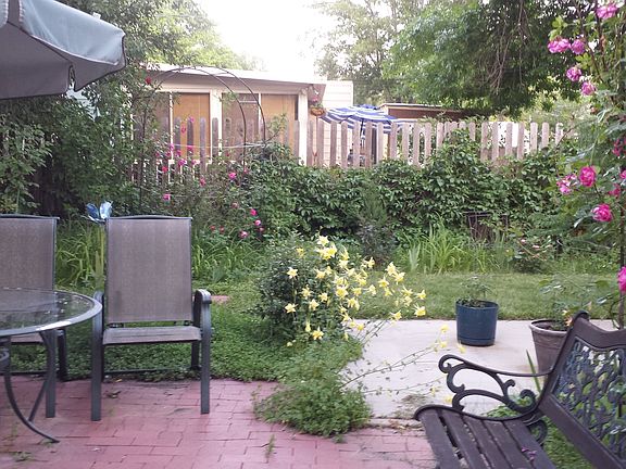 A beautifully Stuccoed Kitty Hawk single level home, centrally located in a desirable neighborhood! Great layout, front section: living room, dining room, counter divided kitchen, 3 bedrooms and 2 baths, secluded back area with additional living room with gas fireplace, access to back patio and 4th bedroom. Attached garage, and plenty of storage throughout home. Fenced, well established back garden with large Maple, Sumac, Cherry, numerous Plum trees grape vine, trellised Rose bushes. Get it before it's gone!