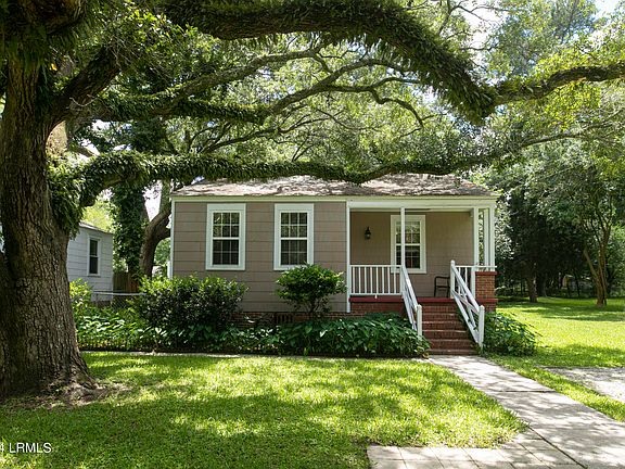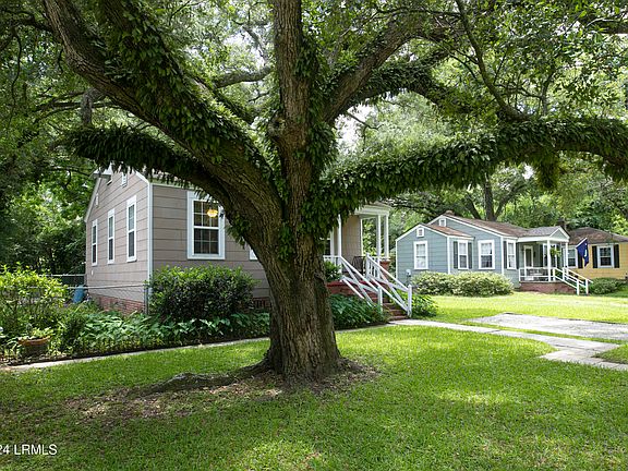 CHARMING LOWCOUNTRY COTTAGE 3 MIN FROM THE WATERFRONT DOWNTOWN (1.1 MILES). A majestic live oak covered in resurrection ferns in the front yard graciously welcomes you to Lowcountry Living. The covered front porch creates a cozy entry into the living room, which is open to the dining room, all trimmed with wide vintage moldings. The quaint cottage kitchen is completed w/ painted bead board . The design is both practical and efficient with a rear door to the freshly painted deck & patio, which leads to a lovely shaded back yard with ally access. The home boast 2 generous bedrooms (12 X 11 +) in size and full hall bath. Hardwood floors are throughout living areas & bedrooms. There is also a pull down attic that is partially floored along with replacement windows throughout.