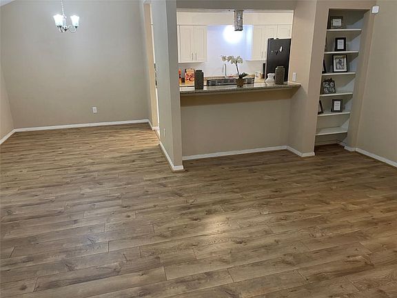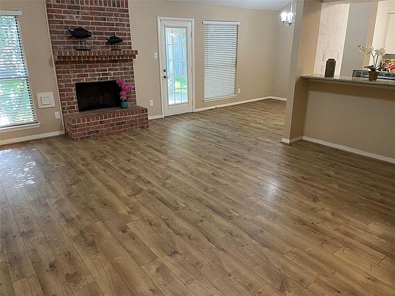 Cute 2 Bedroom 2 Bath Home. All wood laminate and tile flooring. Updated 5/6 white kitchen and secondary bathroom cabinets, granite counter tops, kitchen sink and faucets. Updated door knobs throughout the home. Backyard has a covered patio. 2 Car garage. Recent other updates include HVAC system, roof, and water heater. Large Primary bedroom with extra office space. Large family room with brick fireplace. Ceiling fans in all rooms. Refrigerator included.