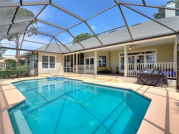 This remarkable WINDERMERE POOL/SPA HOME is located in the exclusive community of Windsor Hill. Mature Oak trees frame this 4 Bedroom, 3 Bathroom home on almost 1/2 acre backing up to a large green space that has been elegantly appointed. Formal Living, and dining rooms with rich woods flooring, crown molding greet you after entering the custom foyer. This leads to the large family room with a brick wood burning fire place, French doors that open to the covered patio, and screened pool/spa. The split floor plan of the home is ideal with 2 spacious bedrooms and Jack and Jill custom bathroom that can all close off to the main house when not in use, with master suite and 4th bedroom on the other side of the home. The kitchen has been masterfully renovated with stone counter tops, solid wood cabinets, matching back splash, stainless appliances, custom lighting, and flooring with eating space over looking the pool/spa area. The large master suite with French door access to bonus area, views of the pool/spa and green space is a truly peaceful retreat to unwind. If that is not enough the master bath is a spa in of itself with a large walk in closet, solid wood double vanity, stone counter tops, large custom tiled shower, and tub. This property is truly a gem and must be toured to view all of the additional amenities that are with built into this dream home.