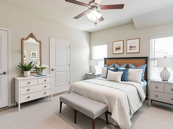 The tranquil primary suite offers a relaxing retreat, featuring a private bath with dual sinks and a convenient combination tub and shower. For year-round comfort, you’ll find ceiling fans throughout the home. Finally, step outside to enjoy the expansive potential of the spacious backyard, providing ample room for entertaining and leisure.
