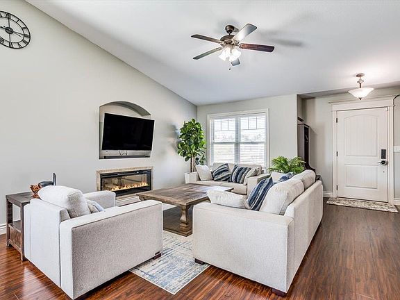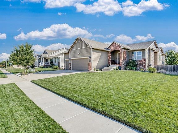 Welcome to this beautiful former model home in Southern Ridge. This maintenance free 4 bedroom, 3 bath and 3 car garage home is move-in ready! Goddard Schools!! Upon entering you will love the neutral paint and beautiful luxury plank Vinyl that flows throughout the main floor. The vaulted ceilings add such a glamorous touch! The kitchen features granite countertops, an island, nice pantry along with a full set of kitchen appliances. There is main floor laundry room and a main floor bathroom. The primary bedroom is quite large with an attached bathroom. You will appreciate the double sicks and separate tub and shower. Heading into the basement there is a large family room with separate office and 2 additional bedrooms. The seller is leaving their beautiful electric fireplace for you to enjoy! Outside you will enjoy evenings on the covered deck. The backyard is fenced and features a sprinkler system on a well. Roof replaced in 2021! Don’t miss out on this great property!