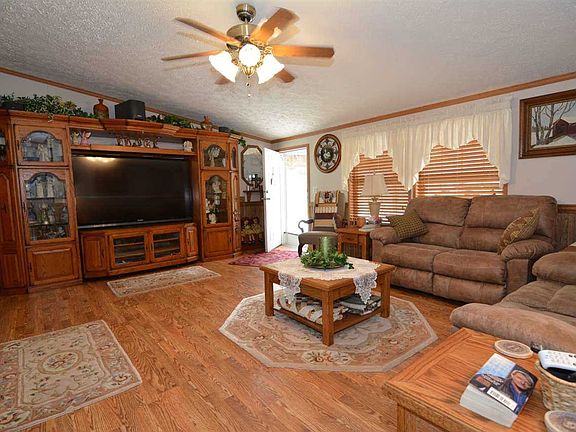 One owner manufactured home located 17 minutes from Eastland Mall on 5.43 rolling and partially wooded acres. Extremely well maintained home with a three tiered composite deck, detached 24 x 40 garage with a shop (great for woodworking). Covered carport. The home features an open floor plan vaulted family room with fireplace open to a large eat-in kitchen with ample storage. Split bedrooms, master suite with corner tub. The home comes with a one year homeowner's warranty for peace of mind.