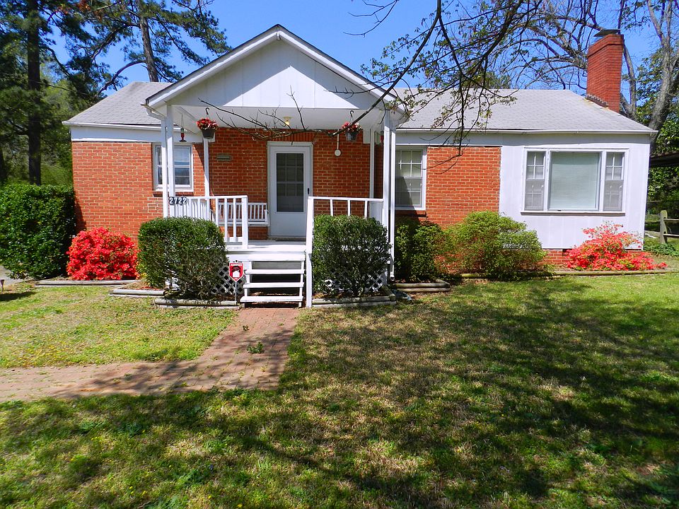 Classic charming southern bungalow in rejuvenating area, updated & improved. Real hardwoods, fireplace w/ gas logs. Sunroom opens to patio and very private flat backyard. Mature landscaping. Detached garage piggyback 2 cars or enjoy large workshop. Super location, minutes to golf, shopping, I40, US70, downtown, Lake Wheeler. One year home warranty. No HOA dues. Great investment.