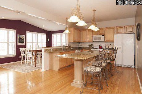 This stately Olmsted Township colonial is a perfect combination of family home and entertainment central! Located in Woodgate Farms on a gorgeous waterside lot w easy access to neighborhood amenities. Inviting kitchen offers granite counters, upgraded fixtures, appliance package & custom extended island that's a perfect party area or homework spot. Natural light streams thru the generous windows in the morning room which opens to the rear deck and serene water views. Gather in the family room in front of the cozy fireplace. Spacious master suite will become your personal retreat - large master bath w garden tub, double sinks, upgraded flooring and lighting. Do your warm weather entertaining on the large deck & patio - or just relax with your favorite beverage while enjoying the lovely landscaping. Fenced yard is perfect for kids & pets. Bonus - basement is plumbed for full bath and presents many options for rec room, guest suite, home theater, etc. Immaculate & move in ready!