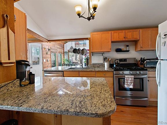 Wow, what a quaint 1929 mountain cabin chalet style home in historic Mountain Park just above downtown Evergreen. Updated kitchen with granite counters, stainless sink, stove and dishwasher. Hardwood floors, some new high-end Anderson windows, newer roof, two wood burning stoves that create that warm mountain feel and offset utility bills. Loft could provide 3rd sleeping area. Sunny southwest facing with some snow-cap views of Mountain Evans! 1/3 acre level fenced lot ideal for dogs and garden area with outbuilding shed for storage. Quick access to downtown Evergreen eateries, lake house concerts and more. Wether you are an investor looking for a rental or a home owner waiting to find an affordable and unique property in central Evergreen, this may be the single family residence for you. Don't delay your showings as this one will have much interest.