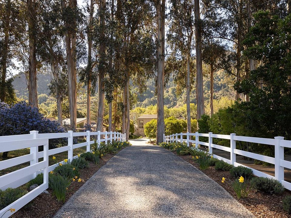 Nestled in the serene landscapes of Carmel Valley's prized Prado Del Sol locale, this enchanting luxury estate with a detached guest house epitomizes sunny California living with beautiful views of the surrounding Santa Lucia Mountains. Spanning across 2+ acres of meticulously landscaped grounds, this residence is a sanctuary amongst natural beauty. From the moment you enter the tree-lined driveway, you're greeted by lush gardens that envelop the property, offering a sense of tranquility and seclusion. The estate enjoys an open floorplan with beautiful indoor and outdoor living spaces, including a living room with vaulted ceilings and a grand fireplace, a luxurious primary suite with a cedar lined closet, two separate 2-bedroom wings providing added privacy for guests/family, an expansive back patio with seating areas for alfresco dining, and a built-in stone firepit. Other highlights include two 2-car garages, an office/loft open to the kitchen below, a private well for irrigation and additional Mal Paso water credits. Wander through the manicured gardens, where vibrant blooms and lush greenery create a picturesque setting for outdoor gatherings with friends and family, complete with a timeless playground masked by the surrounding greenery.