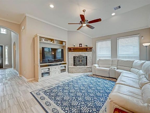 Beautiful , stunning and ready for immediate move in! Highly desirable Northgrove 1 story with 4 bedrooms, 3 full baths, a media room on a cul-de-sac and no rear neighbors! Designer fixtures and finishes throughout including a gorgeous kitchen with white cabinets, stainless steel appliances, high level granite, under cabinet lighting and open to the family room perfect for entertaining and being together. Cozy natural stone corner fire place in family room and gorgeous tile floors that carry throughout the home. You will love the Media room home theater and seller may be willing to include with sale! Spacious primary bedroom with spa like bath retreat. Covered patio out back and loads of privacy with no rear neighbors.