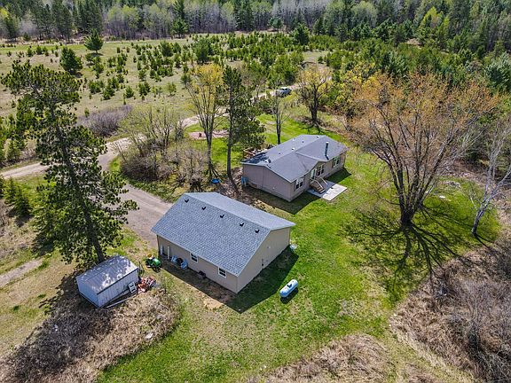 Ultra private, 3 bed, 2 bath home, set on 5 acres, with 1296 sq ft, all one level. Primary bedroom with full bath and Walk-in. Nearly new two stall detached garage (28'x32'), finished with in floor heat, and a bonus room for a workshop, office or storage. Located North of Park Rapids in the heart of lakes country. Near loads of public land, a bunch of area lakes, and a short ride to nearby snowmobile and ATV trails.