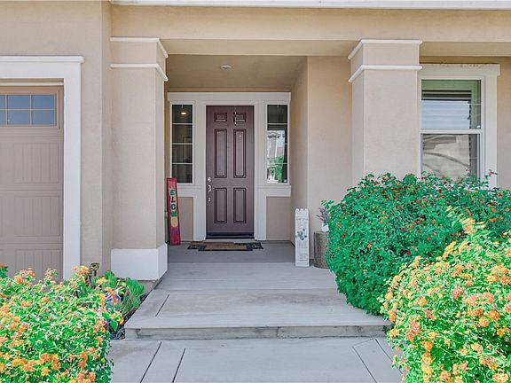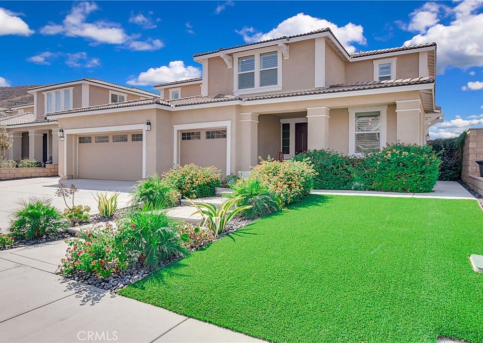 This stunning and versatile two-story LENNAR home, located in Menifee's Remington Place community, offers an impressive 4,124 square feet of living space on a generous 8,463 square foot lot. Featuring up to 7 bedrooms and 4 bathrooms, (current configuration is with 5 bedrooms and private suite attached to primary rooms in main house as well as the gen suite) the home includes an attached Next Gen® suite, approximately 800 square feet, functioning as a complete ADU. This suite has its own private entrance, living room, full kitchen, laundry room, and a spacious bedroom with an additional auxiliary room, perfect for a retreat, office, or workout space. The suite also connects to the main home, providing both privacy and versatility. The main home showcases 4 bedrooms upstairs, including a large guest bathroom with a double sink vanity, separate tub/shower room, and a dedicated space for the toilet. A giant loft area adds additional living or entertainment space. The luxurious main bedroom features an oversized bathroom with a separate garden tub, shower, dual sink vanity, and a dropped makeup vanity. The bedroom itself is also oversized, complete with an attached suite that can serve as a study, exercise room, or auxiliary bedroom. Custom lighting and ceiling fans are installed throughout the entire home, along with plantation shutters for a polished finish. The home also includes a whole-house fire sprinkler system for added safety, as well as energy-efficient solar panels. Downstairs, the open-concept living space impresses with luxury vinyl flooring and vaulted ceilings. The formal dining room, private office, and spacious great room are complemented by a gourmet kitchen with granite countertops, upgraded stainless steel appliances, double ovens, and a large walk-in pantry. Perfect for entertaining, this kitchen provides plenty of space for gatherings. This energy-efficient home comes equipped with PAID OFF Solar, two tankless water heaters, recessed lighting, low-flow toilets and showers, and smart home technology, including an invisible smart lock, smart garage controls, and a smart thermostat. Outside, the fully custom backyard features a massive pool, jacuzzi, and a decorative tile wall with waterfall features. With no HOA and close proximity to schools, shopping, and dining, this home offers luxury, convenience, and space in a prime Menifee location.