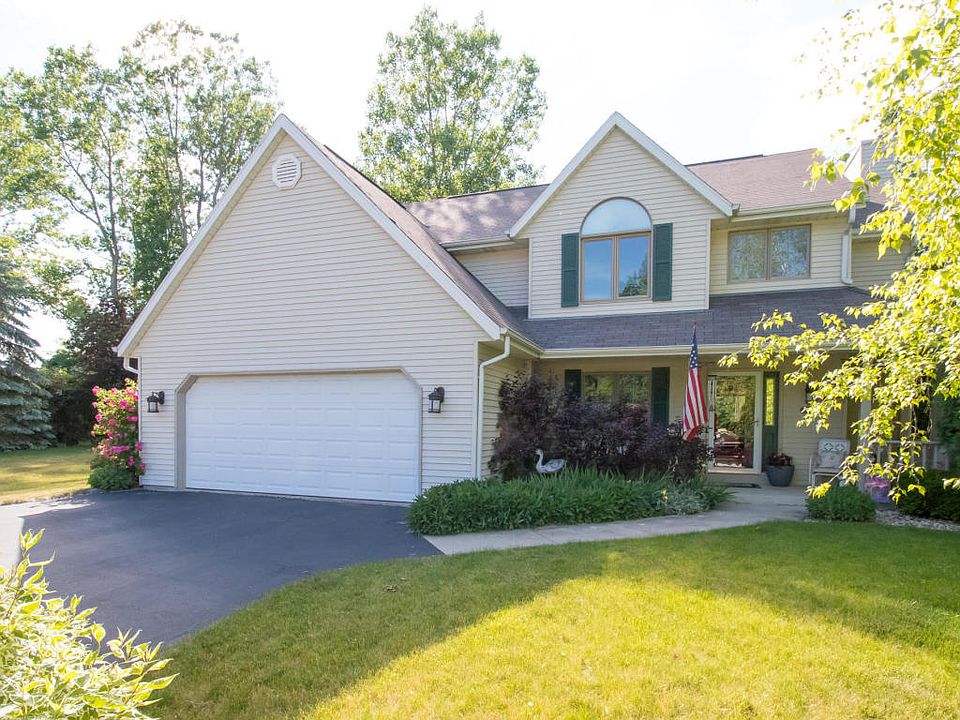 Quiet Cul de Sac with a Park like setting right in your own backyard. Second floor laundry to accommodate the 4 bedrooms and 2 full baths on this level. The Open Concept Living Room to Kitchen area make a great space for entertaining or relaxing by the natural fireplace. Beautiful French doors can ad privacy for the Office/Dining Room area just off the Kitchen. Basement is ready for all your Rec room ideas. This great home will not last! Seller is also offering a Home Warranty with the purchase.