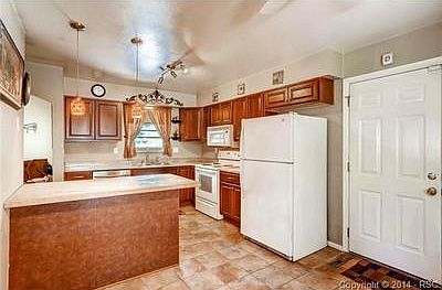 Very desirable Rancher with Main Level living including three bedrooms and two bathrooms! Eat in Kitchen features newer tile floors, newer maple cabinets, and large butcher block island. Main level formal dining room with beautiful bay window opens to large Great Room with built-ins, fireplace and stone surround. Master Bedrooms features "His & Hers" closets, and fully updated bath! Rear yard backs to open space trail and features mature trees, large covered patio, and newer hot tub (included!). Home warranty included! Many large ticket items are all DONE on this house (!!) including a newer furnace, new vinyl siding in 2012, new roof in 2012, and water heater in 2013! Now all that's left is for you to add your personal touches and cosmetic finishes!!CLOSE TO EVERYTHING! Walking distance to schools, parks, shopping and entertainment! Palmer Park is a five minute walk away! Easy access to Power 5-7 minutes East and Academy Boulevard two minutes to the West.