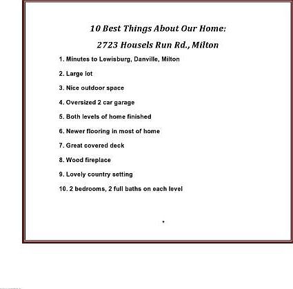 Lovely country setting minutes to Lewisburg and Danville. Both levels finished with hardwood floors. 2 bedrooms and full baths on both levels.