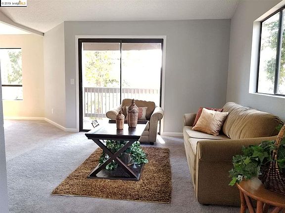 Fully updated 2BR/1BA upper corner unit in Hillcrest Vista development. All new kitchen with Maple Shaker cabinets, granite top, new SS appliances. All new bathroom with quartz slab surrounds. New custom interior paint, new carpet, new six-panel doors, new lights, new baseboards. Upper unit offers vaulted ceiling in living room. Cozy covered patio w/storage. Central heat and AC. Unit is in center of complex with club house, pool, gym, BBQ area and sports court just outside of unit. Restaurants, markets, shops, freeway and BART nearby. Why rent.