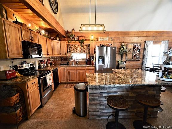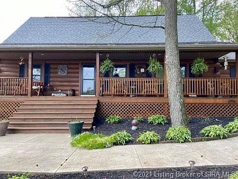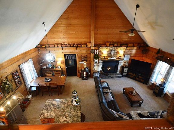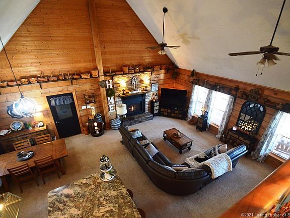 A beautiful Log Home with 3 bedrooms, 2 full baths, 2 car attached garage, 2 washer dry hookups on the main floor, and plumbed for 3rd bathroom in the walkout basement. Simply breathtaking views from your front partial wrap around deck, more views from the upper deck off of the master bedroom, you will own part of the stocked lake, with excellent fishing on 4.57+/- acres. The kitchen has a new class "E" granite countertop, a newly built laundry room, new stone around the fireplace, and the kitchen island. Fully applianced kitchen stainless steel appliances stay. The back yard has a total of 300 feet of fencing and this home sits on a partially wooded lot. The property also has a newer detached 2 car garage with sealed concrete floor, 200 amp electrical service, 2 overhead doors, fully insulated with two lean-tos, and 2 car carport. The entire exterior of the home has been recently stained and caulked with a 7-year stain. Newer radon mitigation system. The yard is landscaped with perennials and recently mulched. Do you want a patio then step into the back yard where there is a newer patio with a fire pit? Don't wait to call today to view this amazing home. Don't walk out of the basement door. There is a dog pen at the door with two dogs.