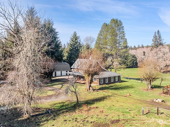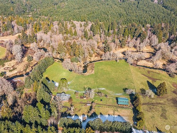 Secluded ranch in the woods! 3800 SF farmhouse on 25 acres with 1400' of scenic North River frontage, rolling pastures and timber. Located in a fertile valley and borders thousands of acres of accessible timberlands. Updated two-story home features open design, country front porch, fir floors, family room with Russian fireplace, big bonus room, F/A heat and much character. 900sf detached garage with finished 900sf loft above. Newer 5 stall horse barn with full length hay loft/storage, greenhouse, gardens, fenced & cross fencing. High quality soils, gorgeous scenery, tall timber, swimming holes, its all here. Just one mile to K-12 school. The possibilities are endless! Available w/adjacent 23 acre parcel & livestock barn. See MLS 2040111.