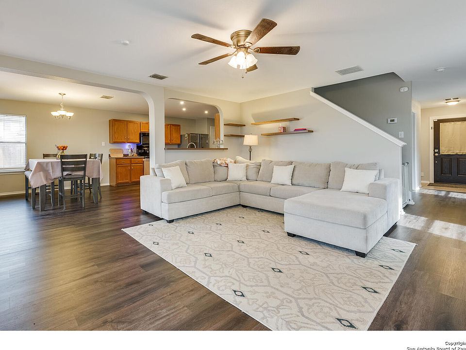 Welcome home to this 2 story well maintained home tucked back in Horizon Pointe. This functional floor plan features a spacious open concept living, dining and kitchen areas, perfect for entertaining. The kitchen is generously wide and expansive, with ample countertop and cabinet storage space, and pantry. There's plenty of room to gather and host in the sprawling living area, which overlooks the back yard. Downstairs also includes a half bath, laundry room and office with french doors that could also be utilized as a guest room. Upstairs features a large secondary living area, the primary suite and 2 additional bedrooms and extra full bath. Unwind in the owner's retreat with a large bedroom and dual vanity bathroom. There's plenty of space to enjoy the outdoors and relax on the covered front porch and recently added back deck. The property backs up to Wagner High School, so there's a wide open space with no neighbors behind the lot. Solar panels help keep your electricity bills low! Google fiber available & Tiger Sanitation offers 2 trash pick ups a week. Nearby Neighborhood amenities include a recreation center, park and beautiful pool. Conveniently located with easy access to I-10, and just minutes to HEB, Walmart, restaurants, various retailers, and Randolph Air Force Base. Buyer Incentives Available! Up to $3,500 Seller contribution towards Buyer closing costs or towards buying down the rate. AND buyer incentive available with use of preferred lender!