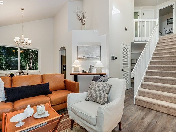 Quiet secluded setting on cul-de-sac. Oversized deck overlooking stunning, private wooded area. Beautifully updated home with new paint, quartz countertops, tile backsplash, and LVP throughout. Vaulted ceilings make this home feel larger than the square footage! Great location, Near 2 community centers, shopping, restaurants, parks, and very close to downtown Portland and OHSU. [Home Energy Score = 6. HES Report at https://rpt.greenbuildingregistry.com/hes/OR10204215]