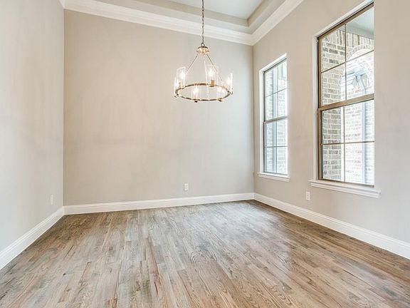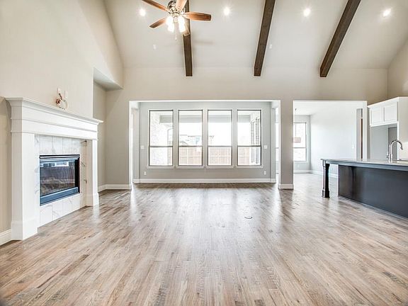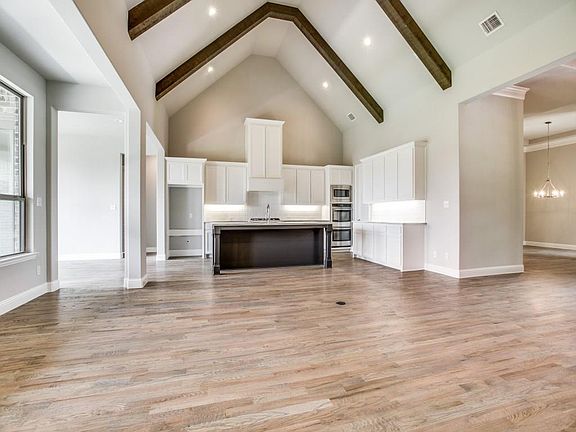 This spacious single-story plan has an inviting front façade with French chateau stone and a large arched front door. Expansive wood floor welcomes you past the foyer into the open concept family room with wooden beams. Tons of custom kitchen cabinets and upgraded stainless steel appliances wrap around the large marble island with views of the backyard. The well-appointed bedroom layout is ideal for any family dynamic giving privacy away from the living areas. This home has a private study, media room with 7.1 surround sound, and a 3 car garage with cedar clad doors. Looking beyond the large covered patio, you can see that this backyard has ample space for kids to run around or a custom pool.