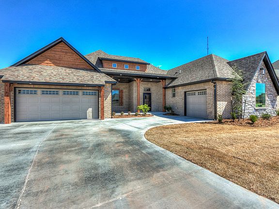 OPEN DAILY. Weather permitting. Beautiful architectural features highlight the entry. The home features an open plan with a private study/flex room. The kitchen is a cook's dream with a gas cooktop, stainless steel appliances, and an island for casual eating and meal preparation. The master suite is a spa retreat with a free-standing tub and walk-in ceramic tile shower. The home features an outdoor fireplace for relaxation and entertaining on those chilly Oklahoma evenings. There is also a attached two-car and a one-car garage.